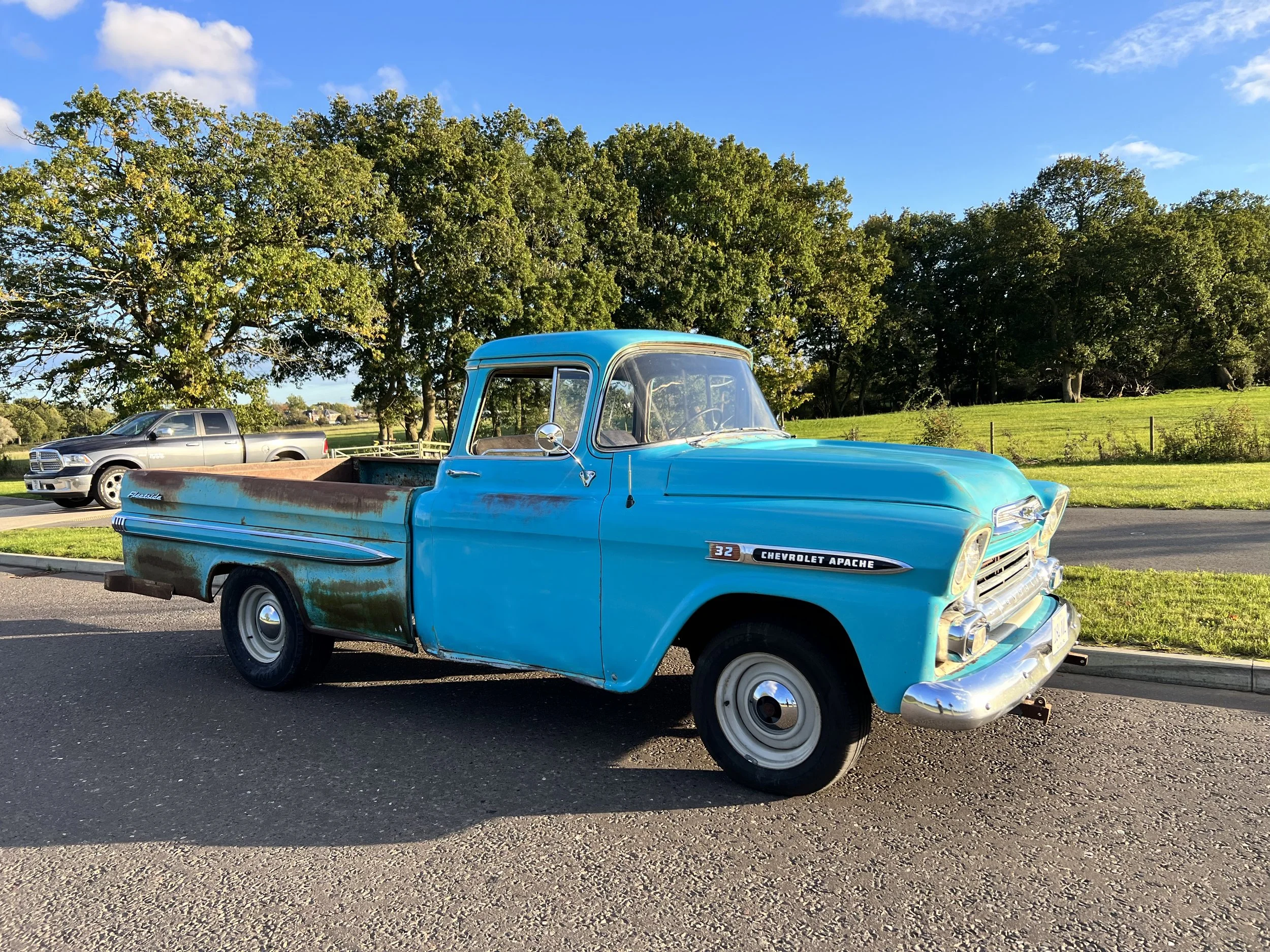 This 1959 Chevrolet Fleetside 3200 is a rare find. It has been owned by one family in Kansas and has been adult-owned in the UK for the last three years. The truck is in excellent condition and has been very well sorted. It has no rot and features its original paint with patina.